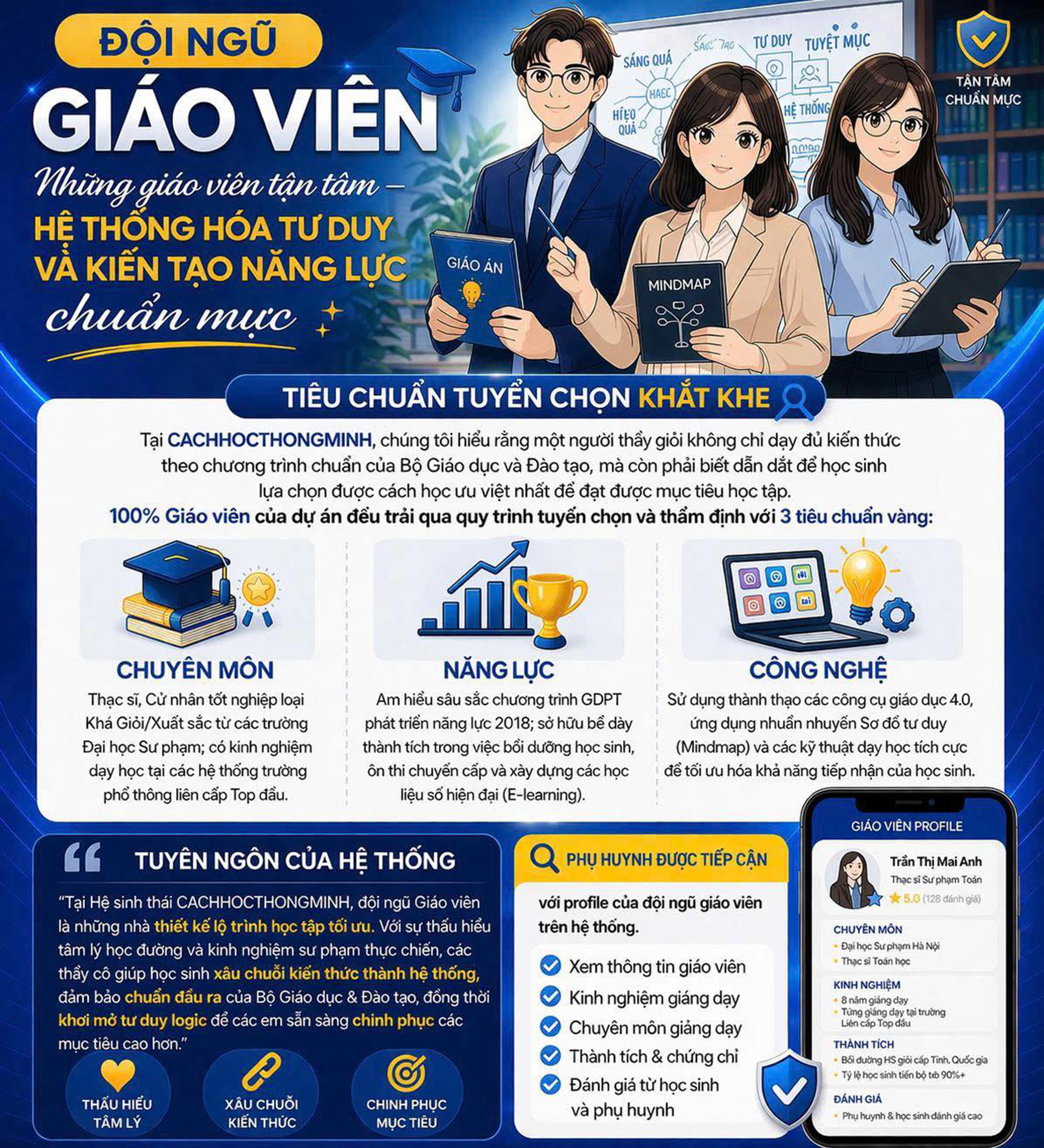 cùng đội ngũ giáo viên Top đầu. Đảm bảo chuẩn Bộ GD&ĐT và mở rộng tư duy